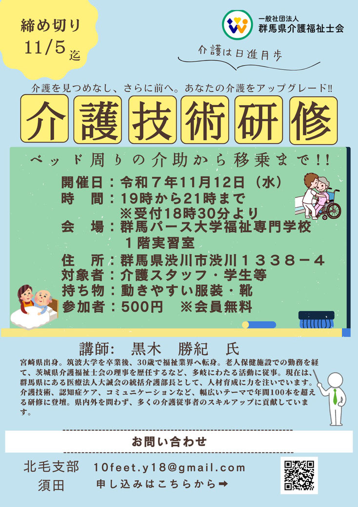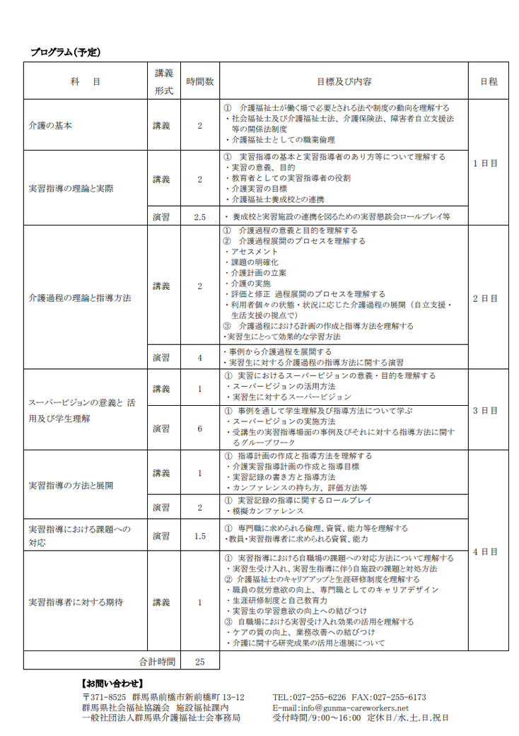 この度、群馬県介護福祉士会では令和7年度第2回介護福祉士実習指導者講習会を開催します。